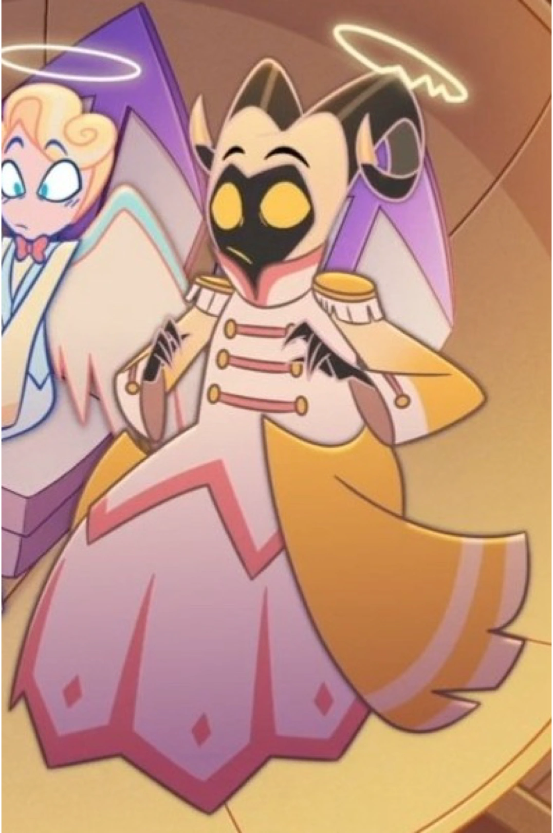 Jego strój przypomina strój Adama, z tą różnicą, że ma też pewne cechy jasnożółtego stroju orkiestry marszowej. Obejmuje żółte epolety, złote guziki z różowymi paskami i lamówką oraz rękawy, których kolor zmienia się z żółtego na jasnożółty. Jego widoczne ramiona są z wyglądu czarne.